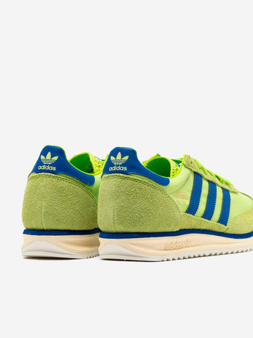 Le adidas SL 72 "Solar Lime" sono le sneakers che hanno rivoluzionato il mondo del running. Fedeli al mondello degli anni '70, queste sneakers presentano una tomaia in nylon e suede che fonde la grinta del verde e del lime con il blu. I dettagli in lamina dorata e l'inconfondibile punta a T completano il design.