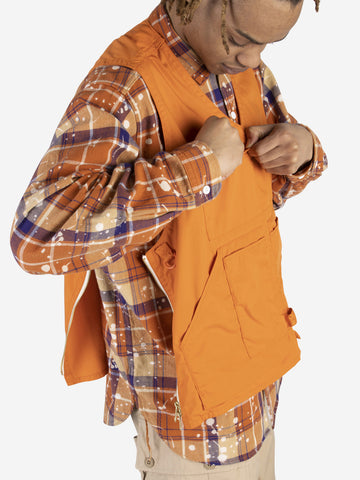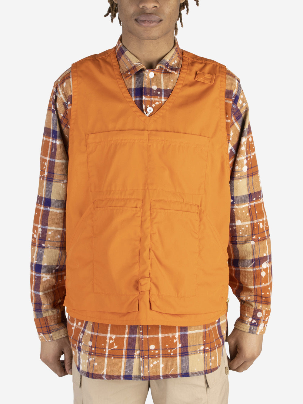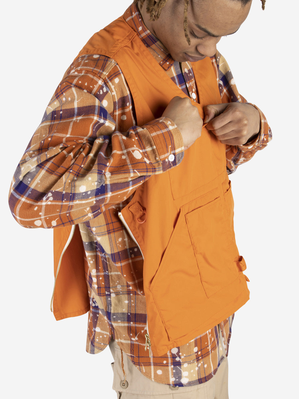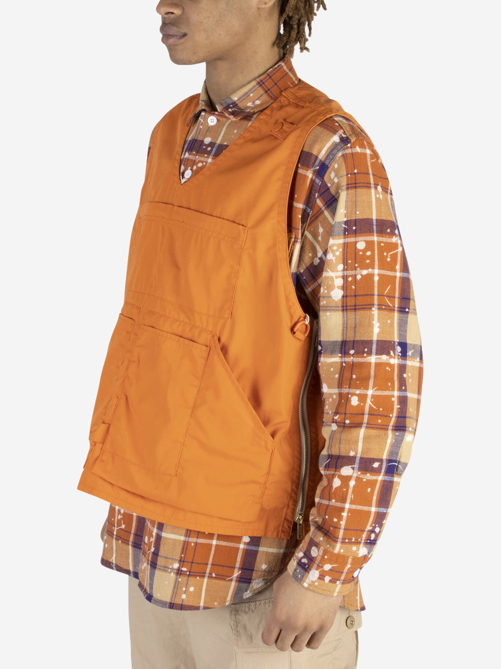 Un capo dallo sirito avventuroso disegnato ispirandosi a un modello vintage anni '50: il gilet firmato Beams+ ha una chiusura con zip laterale che lascia lo spazio frontale a disposizione delle tasche utility ultra comode.