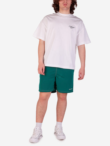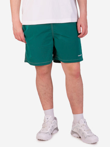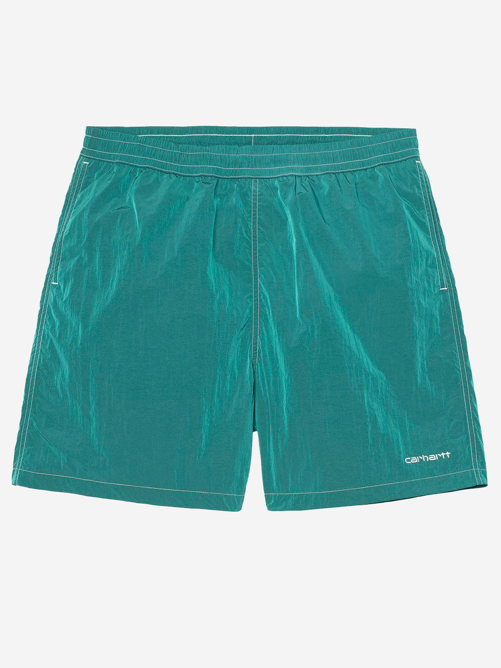 I Canby Swim Trunks di Carhartt WIP sono realizzati in leggero taffetà di nylon impermeabile e sono impreziositi da cuciture a contrasto appena accennate. Il modello è dotato inoltre di due tasche laterali e di una tasca posteriore con anello portachiavi che aggiungono dettagli funzionali. Sulla parte posteriore campeggia un'etichetta quadrata in tessuto e sul davanti un ricamo del logo, in pieno stile Carhartt WIP.