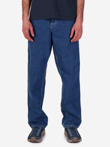 I Single Knee sono un modello iconico di Carhartt WIP. Ispirati al mondo del workwear, questi jeans sono realizzati in pesante denim Norco e presentano cuciture rinforzate nei punti sottposti a maggiore usura. Caratterizzati da una vestibilità rilassata con gamba dritta, questi jeans sono dotati di taschini per gli attrezzi e asola per il martello evidenziando il legame con il mondo utility. Una delle tasche posteriori presenta un'etichetta Heart in tessuto.