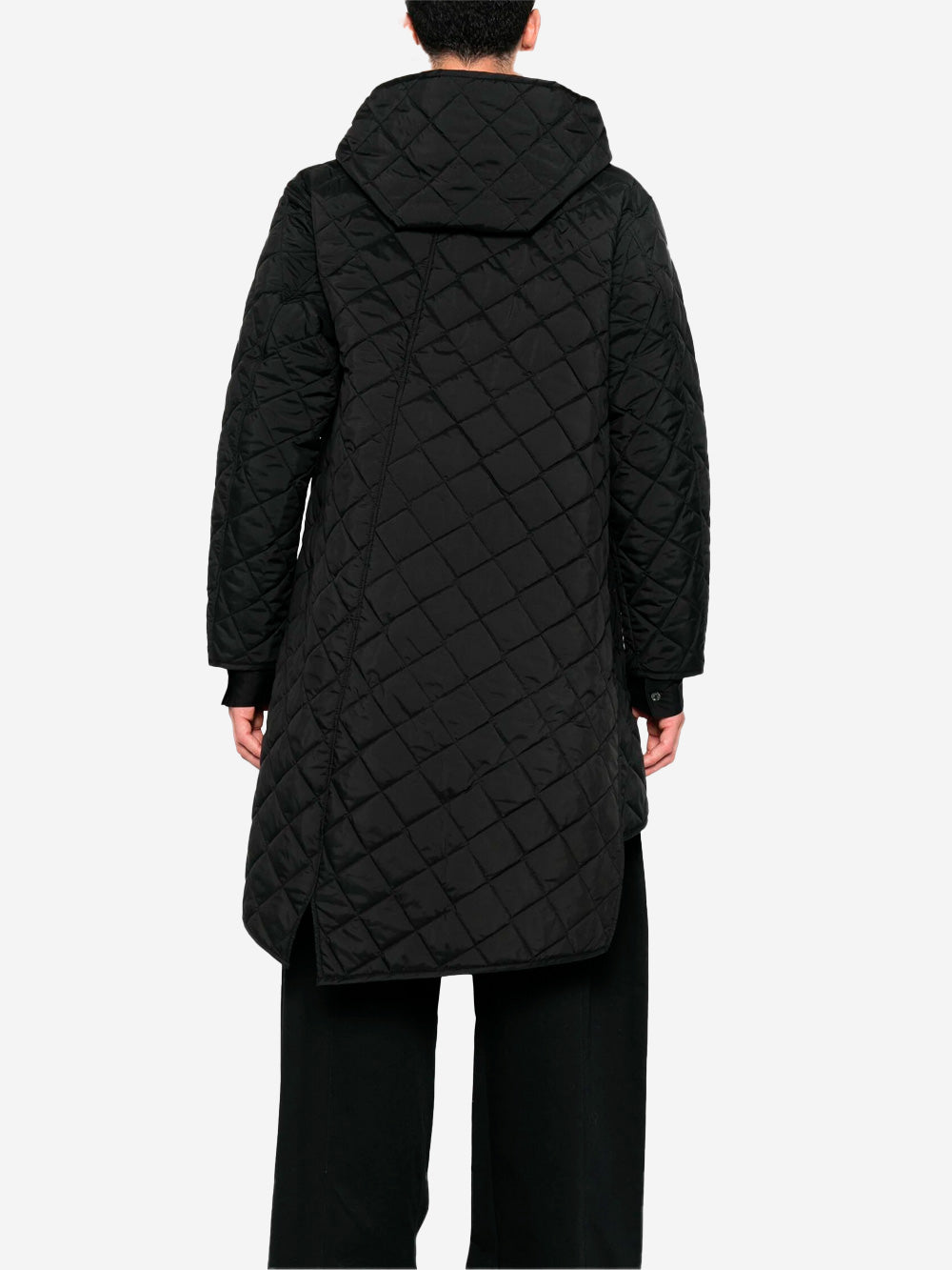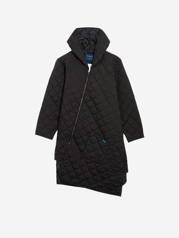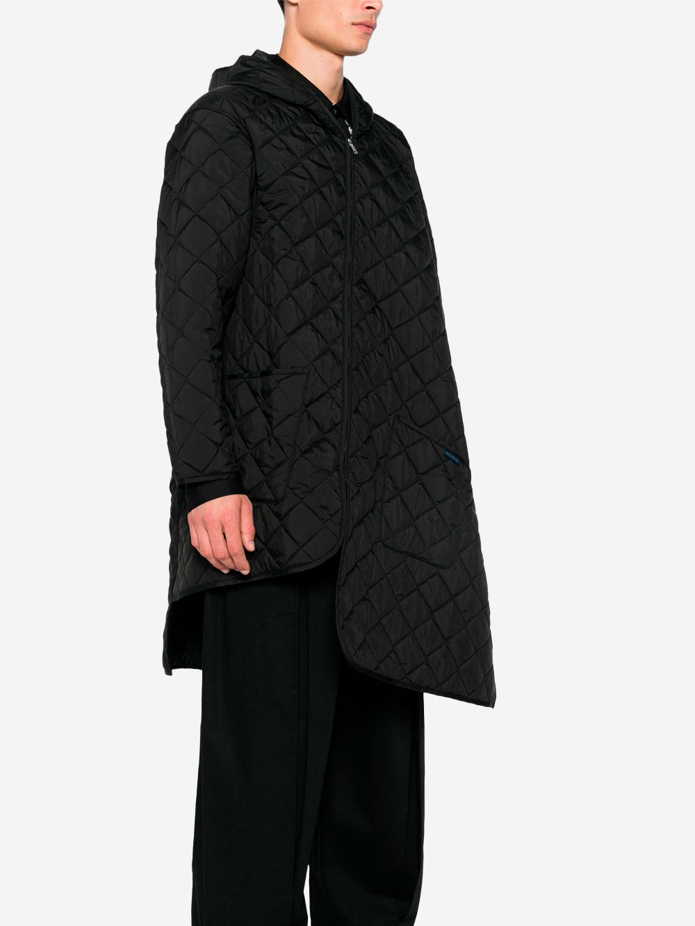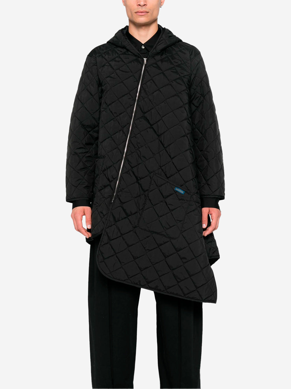 Eleva il tuo guardaroba con il parka asimmetrico Comme des Garçons in collaborazione con Lavenham. Realizzato nel Regno Unito, questo capo iconico combina un design avant-garde con una praticità senza pari. L'orlo asimmetrico e la trapuntatura a rombi creano un look distintivo, mentre la chiusura con zip, il cappuccio e le tasche multiple offrono funzionalità per ogni occasione.
