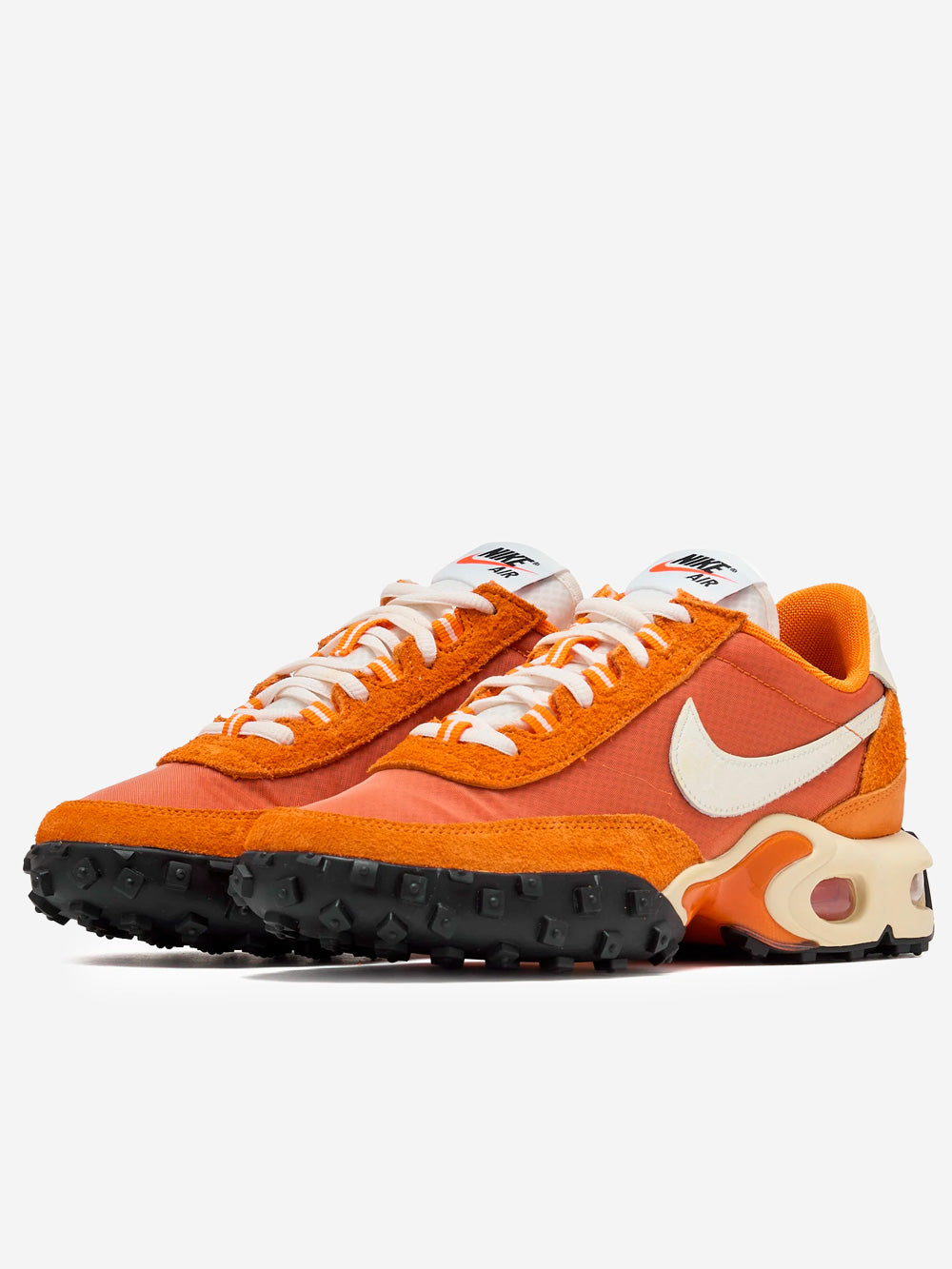 Le Nike Air Max Waffle SP2 sono le sneakers low top che fondono running e streetwear contemporaneo. Realizzate con una tomaia in tessuto rivestita in pelle e pelle scamosciata, le Nike Air Max Waffle si distinguono per il look stratificato. La palette cromatica fonde il calore vibrante dell'arancione con la naturalezza del bianco e la profondità del nero, creando un sneaker dalla silhouette di carattere e sportiva. Morbida e confortevole, l'ammortizzazione Max Air offre la giusta dose di supporto, mentre il battistrada in gomma con motivo waffle assicura trazione e resistenza. Aggiungi un tocco di stile anni Settanta ala tua sneaker rotation scegliendo una leggenda del mondo running con le Nike Air Waffle SP2 Bright Ceramic and Sail.