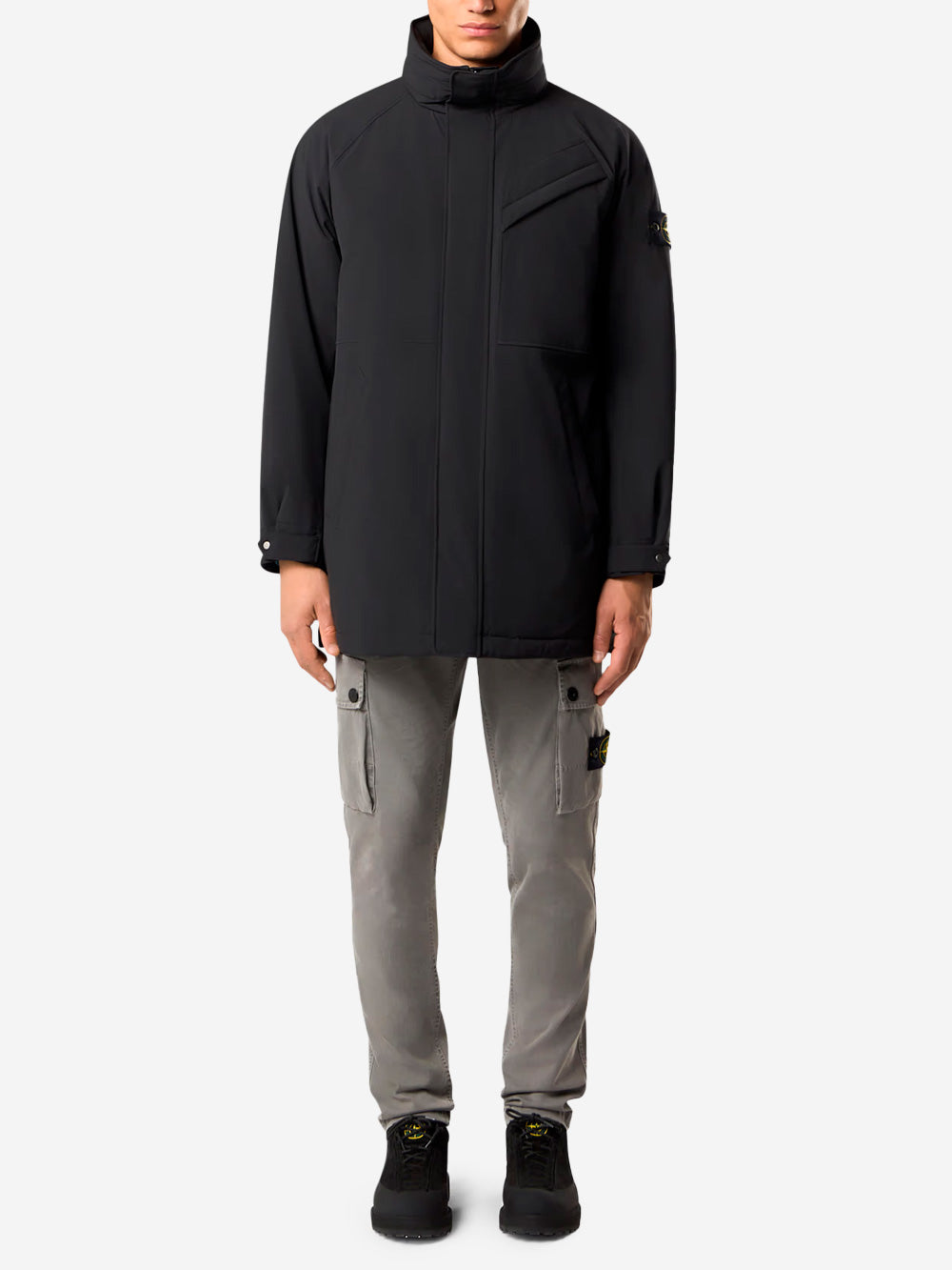 Il cappotto lungo in materiale tecnico di Stone Island è il meglio dell'outerwear contemporaneo. Realizzato in tre strati e dotato di una membrana impermeabile e antivento, questo cappotto di Stone Island è imbottito con uno strato interno di PrimaLoft® Gold P.U.R.E™, un'esclusiva miscela di fibre al 100% riciclate dal diametro estremamente ridotto, che garantisce prestazioni termiche superiori. Le linee pulite e il design sperimentale lo rendono estremamente versatile, mentre i dettagli funzionali e le speciali tecnologie isolanti assicurano il massimo del calore nei mesi più freddi. Il modello è rifinito dall'iconico badge Stone Island, applicato sulla manica sinistra ed è trattato con uno speciale agente antigoccia.