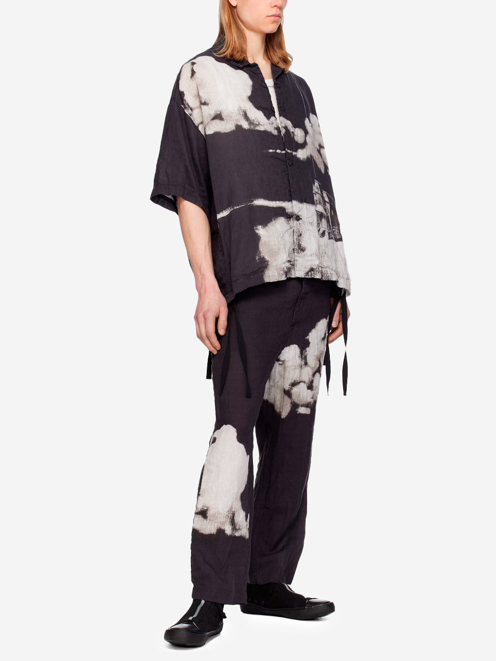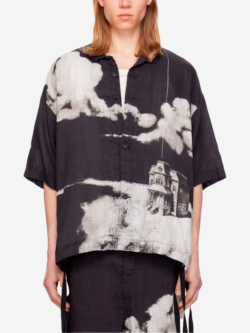 Questa camicia di lino di Undercover incarna la poetica di Jun Takahashi. Realizzata in lino e impreziosita da un grafica con nuvole, questa camicia a maniche corte presenta un colletto e una classica chiusura con bottoni. L'orlo con coulisse regala una vestibilità rilassata, mentre la stampa Cloud aggiunge un tocco poetico ad un capo semplice e ricercato allo stesso tempo. Scopri l'universo poetico e sovversivo di Undercover, il brand giapponese curato da Jun Takahashi.