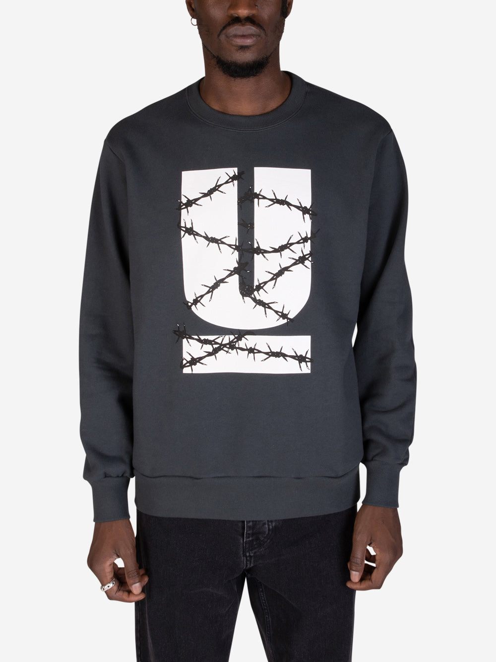Distinguiti dalla massa con l'iconica felpa Barbed Wice di Undercover, ora disponibile su Urbanstaroma. Non è un indumento come un altro, è una vera e propria dichiarazione di stile non convenzionale. Il cotone garzato funge da sfondo per la grafica a contrasto con filo spinato, simbolo di ribellione e individualità. Il comfort sta nei dettagli: il taglio rilassato e il cotone morbido e traspirante regalano comodità per tutto il giorno. Lasciati conquistare dalla semplicità della raffinatezza.